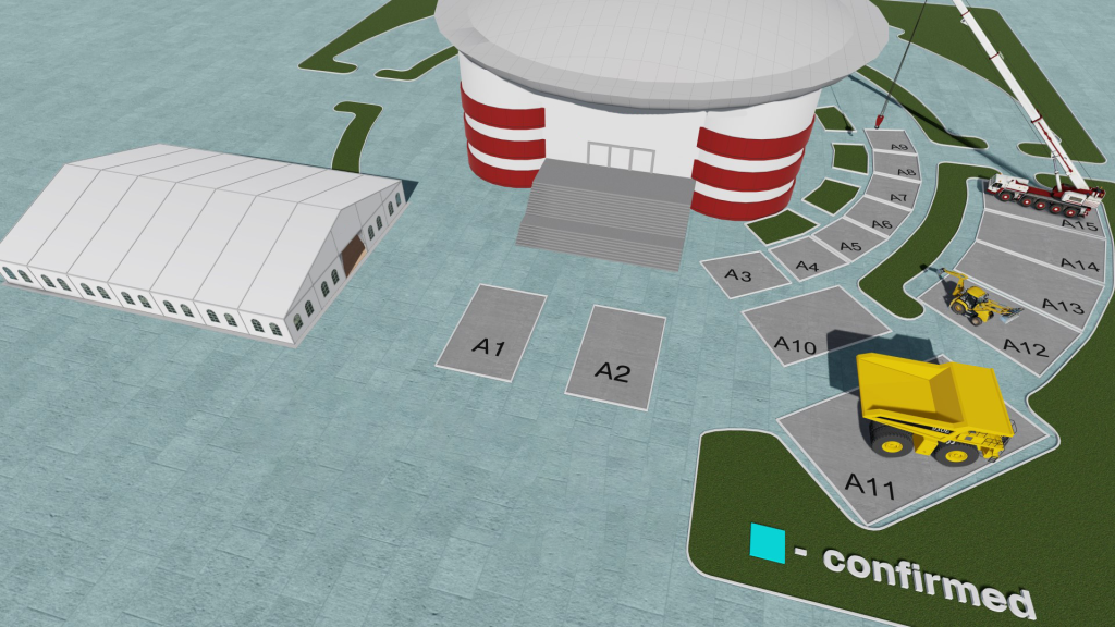 Үзэсгэлэнгийн танхимын гадна талбайд уул уурхайн машин механизм, хүнд даацын тоног төхөөрөмжийг байршуулах боломжтой. *Доод хэмжээ 50.кв.м